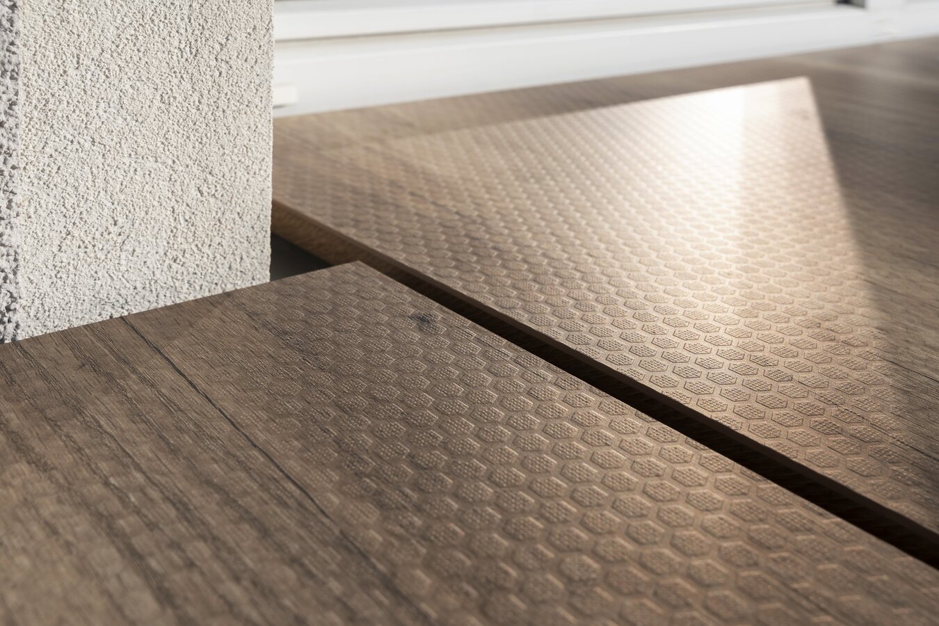 Die Hexa-Oberfläche mit rutschhemmender Prägung ist aber zusätzlich in zahlreichen weiteren Dekoren konfigurier- und bestellbar. Somit passen sich die Max Compact Exterior Balkonbodenplatten den persönlichen Vorstellungen von Design und Ästhetik an.
