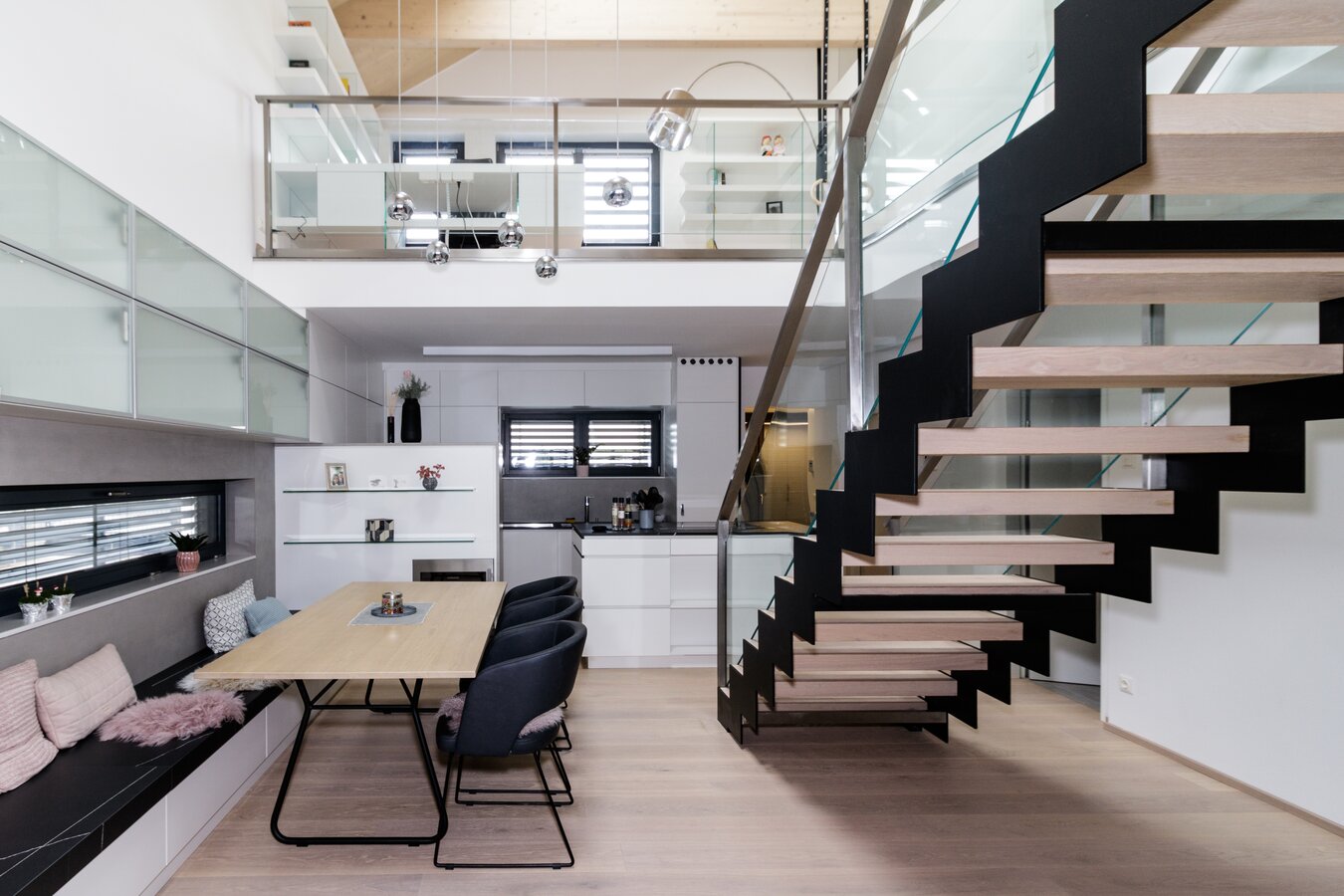 This two-family home is a story of contrasts. Eye-catching, trendy interior design and stunning urban exterior design. This latest project from materials specialist FunderMax, uses a mix of smooth glossy laminates and warm, highly textured oak and metal tones that offer a perfect balance to the stunning exterior spaces.